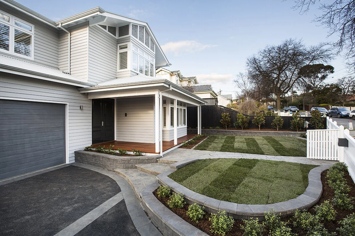 We worked closely with Stephan Kosa Architects and the clients to plan, design and construct this Contemporary version of a Californian bungalow. The client wanted a complete turn key package which included a fully designed and executed landscape, driveway, fencing and pool package. When we first walked through the existing house we noticed the a challenging sloping block.